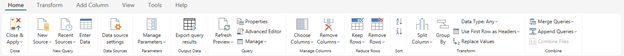 • Open Power Query Editor from the ribbon (Transform) or the query menu (Edit Query).
