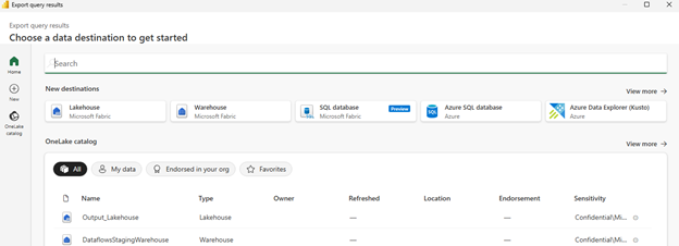 • Once your workspace is assigned to Fabric, choose an online destination: