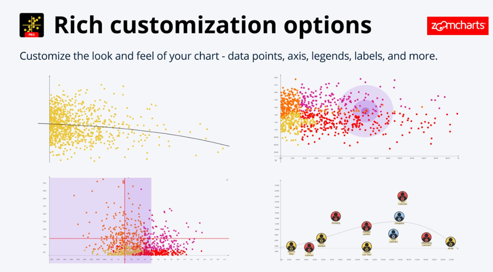 Intuitive data exploration meets smartphone-like UX: zoom, pinch, click to drill down. Great for interactive scatter plots with regression lines, category clusters, and visual storytelling.