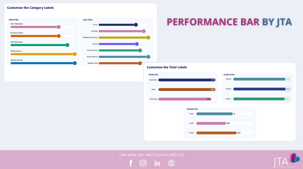 Minimalist progress bars with optional total bars, dynamic labels, and animations. Ideal for tracking KPIs in a sleek way.