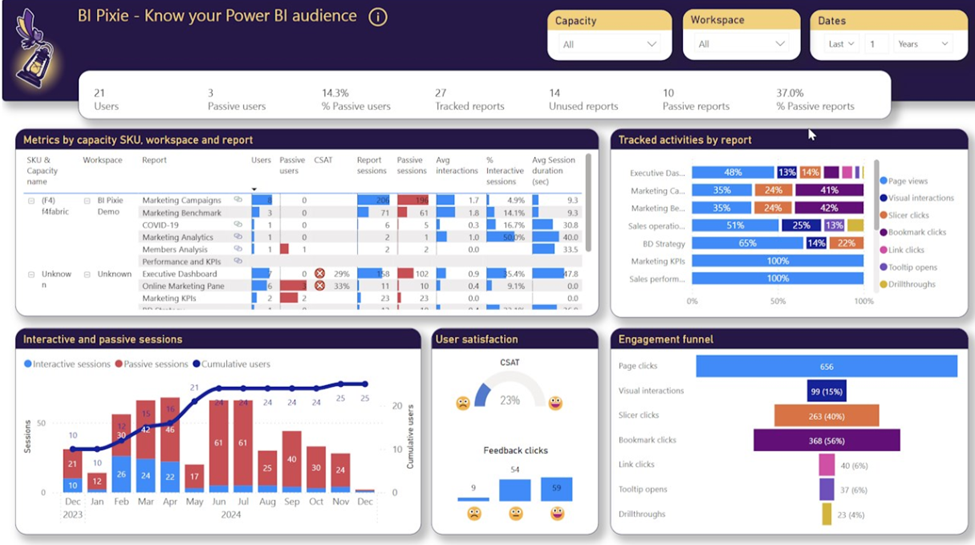 A robust governance and adoption tracker now measuring six dimensions from Adoption to Security. BI Pixie audits Power BI usage and detects RLS misconfigurations, helping orgs boost ROI on analytics.