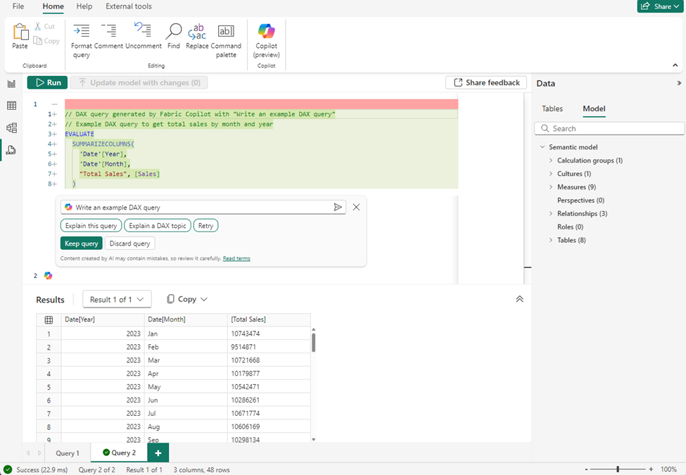 To learn more, refer to the Write DAX queries with Copilot documentation, and try it out today!